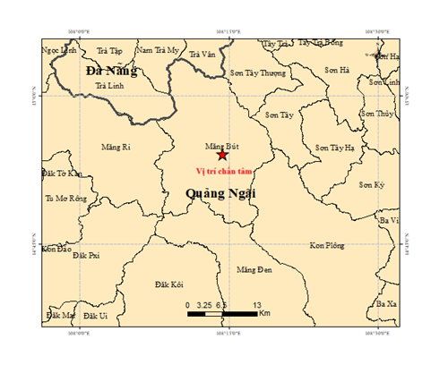Vào hồi 23 giờ 48 phút 58 giây (giờ GMT) ngày 06 tháng 3 năm 2026, tức 06 giờ 48 phút 58 giây (giờ Hà Nội) ngày 07 tháng 3 năm 2026, một trận động đất có độ lớn M = 2.7 xảy ra tại vị trí có tọa độ 14.901° vĩ Bắc – 108.240° kinh Đông, độ sâu chấn tiêu khoảng 8.3 km. Động đất xảy ra tại khu vực xã Măng Bút, tỉnh Quảng Ngãi. Cấp độ rủi ro thiên tai: 0.