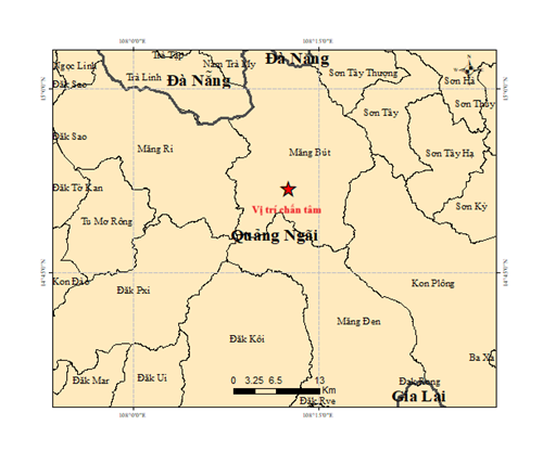 Vào hồi 04 giờ 35 phút 06 giây (giờ GMT) ngày 09 tháng 3 năm 2026, tức 11 giờ 35 phút 06 giây (giờ Hà Nội) ngày 09 tháng 3 năm 2026, một trận động đất có độ lớn M = 3.9 xảy ra tại vị trí có tọa độ 14.864° vĩ Bắc – 108.210° kinh Đông, độ sâu chấn tiêu khoảng 8.1 km. Động đất xảy ra tại khu vực xã Măng Bút, tỉnh Quảng Ngãi. Cấp độ rủi ro thiên tai: 0.