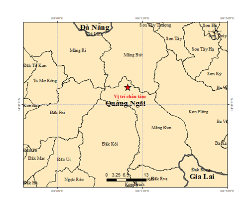 Vào hồi 16 giờ 01 phút 25 giây (giờ GMT) ngày 10 tháng 3 năm 2026, tức 23 giờ 01 phút 25 giây (giờ Hà Nội) ngày 10 tháng 3 năm 2026, một trận động đất có độ lớn M = 2.8 xảy ra tại vị trí có tọa độ 14.800° vĩ Bắc – 108.208° kinh Đông, độ sâu chấn tiêu khoảng 8.6 km. Động đất xảy ra tại khu vực xã Măng Đen, tỉnh Quảng Ngãi. Cấp độ rủi ro thiên tai: 0.