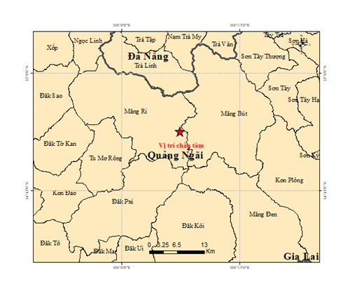 Vào hồi 21 giờ 05 phút 40 giây (giờ GMT) ngày 07 tháng 10 năm 2025 tức 04 giờ 05 phút 40 giây (giờ Hà Nội) ngày 08 tháng 10 năm 2025 một trận động đất có độ lớn 3.1 xảy ra tại vị trí có tọa độ 14.876 độ vĩ Bắc, 108.123 độ kinh Đông), độ sâu chấn tiêu khoảng 8.1 km. Động đất xảy ra tại xã Măng Ri, tỉnh Quảng Ngãi. Cấp độ rủi ro thiên tai cấp 0.