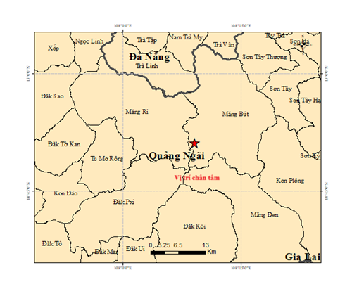 Vào hồi 07 giờ 52 phút 20 giây (giờ GMT) ngày 08 tháng 10 năm 2025 tức 14 giờ 52 phút 20 giây (giờ Hà Nội) ngày 08 tháng 10 năm 2025 một trận động đất có độ lớn 2.7 xảy ra tại vị trí có tọa độ 14.852 độ vĩ Bắc, 108.152 độ kinh Đông), độ sâu chấn tiêu khoảng 8.1 km. Động đất xảy ra tại xã Măng Bút, tỉnh Quảng Ngãi. Cấp độ rủi ro thiên tai cấp 0.