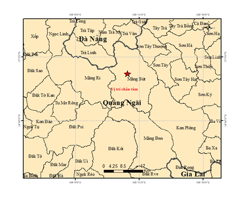 Vào hồi 05 giờ 00 phút 42 giây (giờ GMT) ngày 08 tháng 12 năm 2025, tức 12 giờ 00 phút 42 giây (giờ Hà Nội) ngày 08 tháng 12 năm 2025, một trận động đất có độ lớn 2.7 xảy ra tại vị trí có tọa độ (14.935 độ vĩ Bắc, 108.204 độ kinh Đông), độ sâu chấn tiêu khoảng 8.2 km. Động đất xảy ra tại xã Măng Bút, tỉnh Quảng Ngãi. Cấp độ rủi ro thiên tai: 0.