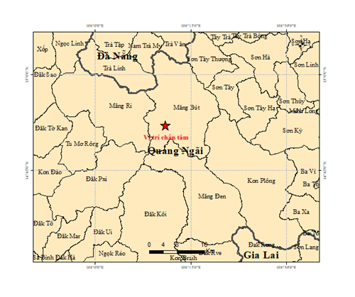 Vào hồi 17 giờ 50 phút 57 giây (giờ GMT) ngày 15 tháng 10 năm 2025 tức 00 giờ 50 phút 57 giây (giờ Hà Nội) ngày 16 tháng 10 năm 2025 một trận động đất có độ lớn 2.9 xảy ra tại vị trí có tọa độ (14.868 độ vĩ Bắc, 108.183 độ kinh Đông), độ sâu chấn tiêu khoảng 8.1 km. Động đất xảy ra tại xã Măng Bút, tỉnh Quảng Ngãi. Cấp độ rủi ro thiên tai cấp 0.