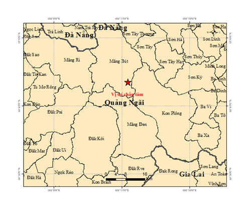 Vào hồi 23 giờ 27 phút 56 giây (giờ GMT) ngày 15 tháng 10 năm 2025 tức 06 giờ 27 phút 56 giây (giờ Hà Nội) ngày 16 tháng 10 năm 2025 một trận động đất có độ lớn 2.8 xảy ra tại vị trí có tọa độ (14.838 độ vĩ Bắc, 108.272 độ kinh Đông), độ sâu chấn tiêu khoảng 8.1 km. Động đất xảy ra tại xã Măng Bút, tỉnh Quảng Ngãi. Cấp độ rủi ro thiên tai cấp 0.