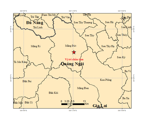 Vào hồi 18 giờ 49 phút 02 giây (giờ GMT) ngày 16 tháng 01 năm 2026, tức 01 giờ 49 phút 02 giây (giờ Hà Nội) ngày 17 tháng 01 năm 2026, một trận động đất có độ lớn 2.8 đã xảy ra tại vị trí có tọa độ (14.882° vĩ Bắc, 108.256° kinh Đông), độ sâu chấn tiêu khoảng 8.5 km. Động đất xảy ra tại xã Măng Bút, tỉnh Quảng Ngãi. Cấp độ rủi ro thiên tai: 0.