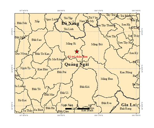 Vào hồi 10 giờ 14 phút 28 giây (giờ GMT) ngày 17 tháng 10 năm 2025 tức 17 giờ 14 phút 28 giây (giờ Hà Nội) ngày 17 tháng 10 năm 2025 một trận động đất có độ lớn 3.3 xảy ra tại vị trí có tọa độ (14.867 độ vĩ Bắc, 108.105 độ kinh Đông), độ sâu chấn tiêu khoảng 8.1 km. Động đất xảy ra tại xã Măng Ri, tỉnh Quảng Ngãi. Cấp độ rủi ro thiên tai cấp 0.