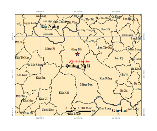 Vào hồi 23 giờ 56 phút 54 giây (giờ GMT) ngày 16 tháng 10 năm 2025 tức 06 giờ 56 phút 54 giây (giờ Hà Nội) ngày 17 tháng 10 năm 2025 một trận động đất có độ lớn 3.3 xảy ra tại vị trí có tọa độ (14.886 độ vĩ Bắc, 108.245 độ kinh Đông), độ sâu chấn tiêu khoảng 8.1 km. Động đất xảy ra tại xã Măng Bút, tỉnh Quảng Ngãi. Cấp độ rủi ro thiên tai cấp 0.