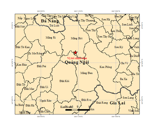 Vào hồi 16 giờ 27 phút 32 giây (giờ GMT) ngày 19 tháng 10 năm 2025 tức 23 giờ 27 phút 32 giây (giờ Hà Nội) ngày 19 tháng 10 năm 2025 một trận động đất có độ lớn 2.7 xảy ra tại vị trí có tọa độ (14.820 độ vĩ Bắc, 108.230 độ kinh Đông), độ sâu chấn tiêu khoảng 8.1 km. Động đất xảy ra tại xã Măng Bút, tỉnh Quảng Ngãi. Cấp độ rủi ro thiên tai cấp 0.