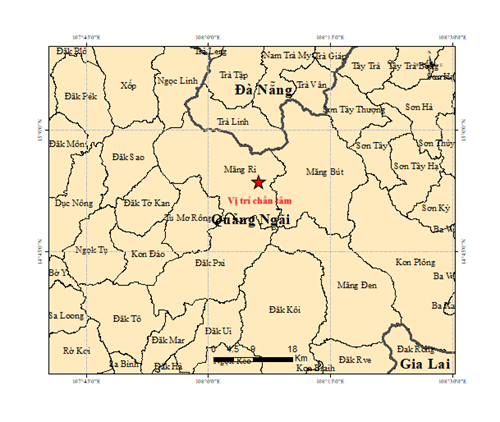 Vào hồi 07 giờ 56 phút 39 giây (giờ GMT) ngày 20 tháng 10 năm 2025 tức 14 giờ 56 phút 39 giây (giờ Hà Nội) ngày 20 tháng 10 năm 2025 một trận động đất có độ lớn 2.6 xảy ra tại vị trí có tọa độ (14.893 độ vĩ Bắc, 108.102 độ kinh Đông), độ sâu chấn tiêu khoảng 8.1 km. Động đất xảy ra tại xã Măng Ri, tỉnh Quảng Ngãi. Cấp độ rủi ro thiên tai cấp 0.