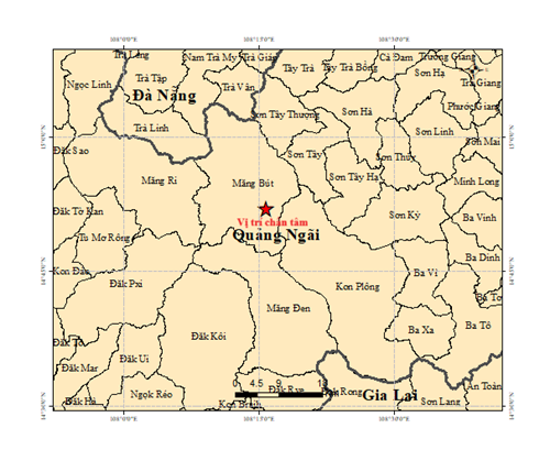 Vào hồi 14 giờ 30 phút 58 giây (giờ GMT) ngày 22 tháng 10 năm 2025 tức 21 giờ 30 phút 58 giây (giờ Hà Nội) ngày 22 tháng 10 năm 2025 một trận động đất có độ lớn 2.9 xảy ra tại vị trí có tọa độ (14.866 độ vĩ Bắc, 108.263 độ kinh Đông), độ sâu chấn tiêu khoảng 8.2 km. Động đất xảy ra tại xã Măng Bút, tỉnh Quảng Ngãi. Cấp độ rủi ro thiên tai cấp 0.