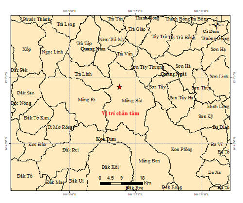 Vào hồi 13 giờ 36 phút 33 giây (giờ GMT) ngày 22 tháng 8 năm 2025 tức 20 giờ 36 phút 33 giây (giờ Hà Nội) ngày 22 tháng 8 năm 2025 một trận động đất có độ lớn 2.7 xảy ra tại vị trí có tọa độ (14.967 độ vĩ Bắc, 108.190 độ kinh Đông), độ sâu chấn tiêu khoảng 8.1 km. Động đất xảy ra tại xã Măng Bút, tỉnh Quảng Ngãi. Cấp độ rủi ro thiên tai cấp  0.
