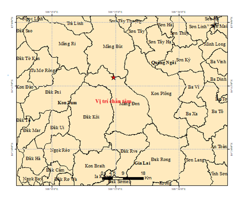 Vào hồi 07 giờ 36 phút 47 giây (giờ GMT) ngày 22 tháng 8 năm 2025 tức 14 giờ 36 phút 47 giây (giờ Hà Nội) ngày 22 tháng 8 năm 2025 một trận động đất có độ lớn 2.6 xảy ra tại vị trí có tọa độ (14.784 độ vĩ Bắc, 108.244 độ kinh Đông), độ sâu chấn tiêu khoảng 8.1 km. Động đất xảy ra tại xã Măng Đen, tỉnh Quảng Ngãi. Cấp độ rủi ro thiên tai cấp 0.