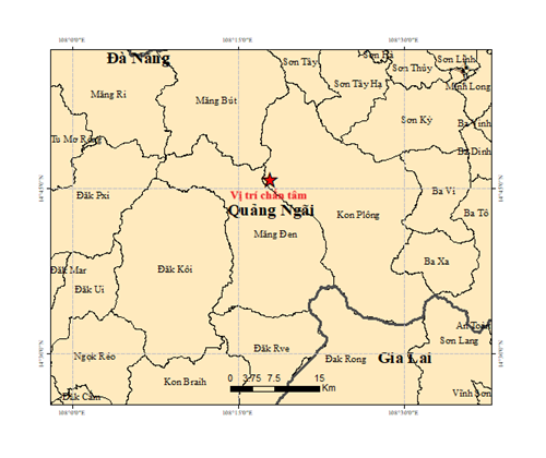 Vào hồi 05 giờ 16 phút 18 giây (giờ GMT) ngày 23 tháng 4 năm 2026, tức 12 giờ 16 phút 18 giây (giờ Hà Nội) ngày 23 tháng 4 năm 2026, một trận động đất có độ lớn M = 2.7 xảy ra tại vị trí có tọa độ 14.763° vĩ Bắc – 108.298° kinh Đông, độ sâu chấn tiêu khoảng 8.1 km. Động đất xảy ra tại khu vực Kon Plông, tỉnh Quảng Ngãi. Cấp độ rủi ro thiên tai: 0.