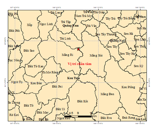 Vào hồi 17 giờ 06 phút 46 giây (giờ GMT) ngày 22 tháng 8 năm 2025 tức 00 giờ 06 phút 46 giây (giờ Hà Nội) ngày 23 tháng 8 năm 2025 một trận động đất có độ lớn 2.6 xảy ra tại vị trí có tọa độ (14.952 độ vĩ Bắc, 108.133 độ kinh Đông), độ sâu chấn tiêu khoảng 8.1 km. Động đất xảy ra tại xã Măng Bút, tỉnh Quảng Ngãi. Cấp độ rủi ro thiên tai cấp  0.