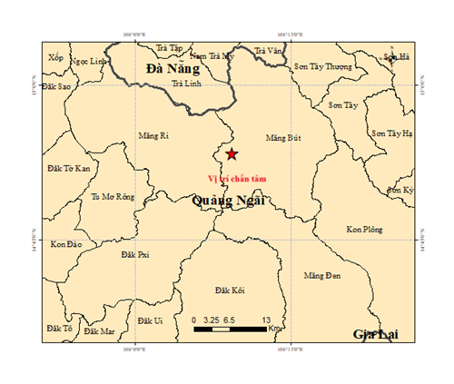 Vào hồi 21 giờ 48 phút 21 giây (giờ GMT) ngày 24 tháng 02 năm 2026, tức 04 giờ 48 phút 21 giây (giờ Hà Nội) ngày 25 tháng 02 năm 2026, một trận động đất có độ lớn 3.3 xảy ra tại vị trí có tọa độ (14.889° vĩ Bắc – 108.156° kinh Đông), độ sâu chấn tiêu khoảng 8.1 km. Động đất xảy ra tại khu vực xã Măng Bút, tỉnh Quảng Ngãi. Cấp độ rủi ro thiên tai: 0.