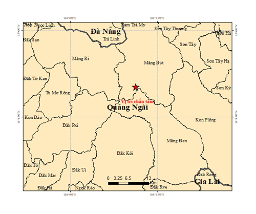 Vào hồi 09 giờ 11 phút 18 giây (giờ GMT) ngày 25 tháng 02 năm 2026, tức 16 giờ 11 phút 18 giây (giờ Hà Nội) ngày 25 tháng 02 năm 2026, một trận động đất có độ lớn 3.2 xảy ra tại vị trí có tọa độ (14.837° vĩ Bắc – 108.188° kinh Đông), độ sâu chấn tiêu khoảng 8.1 km. Động đất xảy ra tại khu vực xã Măng Bút, tỉnh Quảng Ngãi. Cấp độ rủi ro thiên tai: 0.