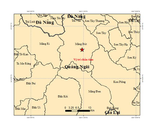 Vào hồi 22 giờ 59 phút 56 giây (giờ GMT) ngày 25 tháng 02 năm 2026, tức 05 giờ 59 phút 56 giây (giờ Hà Nội) ngày 26 tháng 02 năm 2026, một trận động đất có độ lớn 2.6 xảy ra tại vị trí có tọa độ (14.888° vĩ Bắc – 108.245° kinh Đông), độ sâu chấn tiêu khoảng 10 km. Động đất xảy ra tại khu vực xã Măng Bút, tỉnh Quảng Ngãi. Cấp độ rủi ro thiên tai: 0.